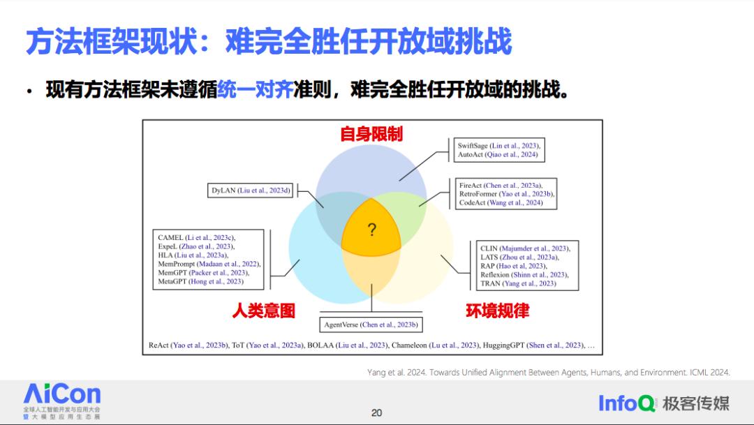 从方法的角度出发,现有的方法大多只解决了单方面或两方面的对齐问题,能够同时考虑并做到三方对齐的方法,目前还没有出现。开发能够实现三方对齐的综合方法,将是未来智能体研究和工业应用中的一个重要课题。