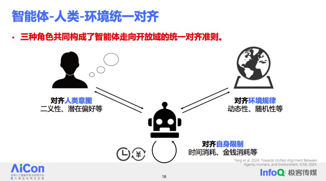 要实现理想中的开放域智能体系统,需要采取哪些措施呢?一个重要的原则是实现智能体、人类和环境这三者之间的统一对齐。