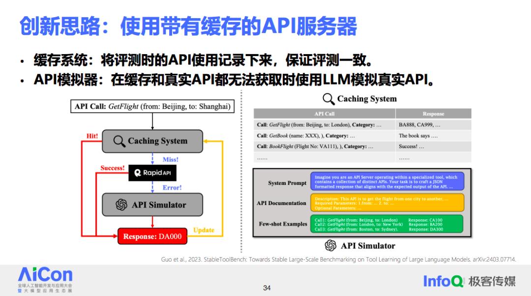 为了开展开放域的工具学习研究,评价基准中因真实工具不稳定带来的问题必须解决。为此,清华形成了一套解决方案,基本思路是在现有的评价基准上引入两个关键组件:一个缓存系统和一个 API 模拟器。