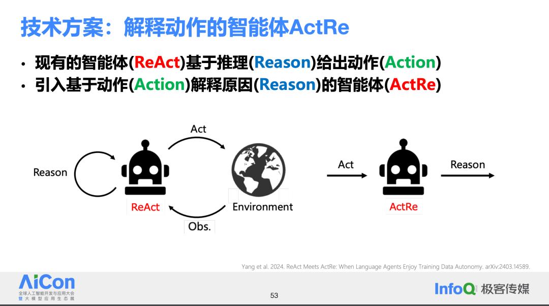 ActRe 智能体:接收观察结果和已经采取的动作作为输入,再尝试解释为什么要采取这个动作。