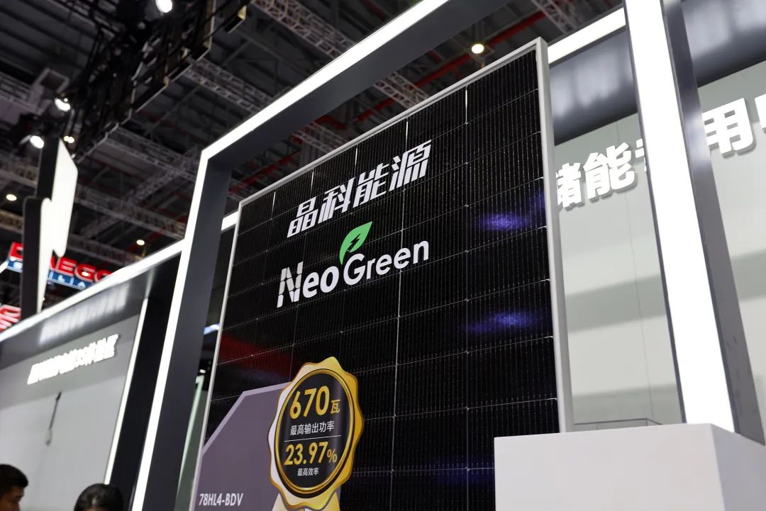 ▲(2024年上海SNEC上,晶科能源展示的N型670W光伏面板)