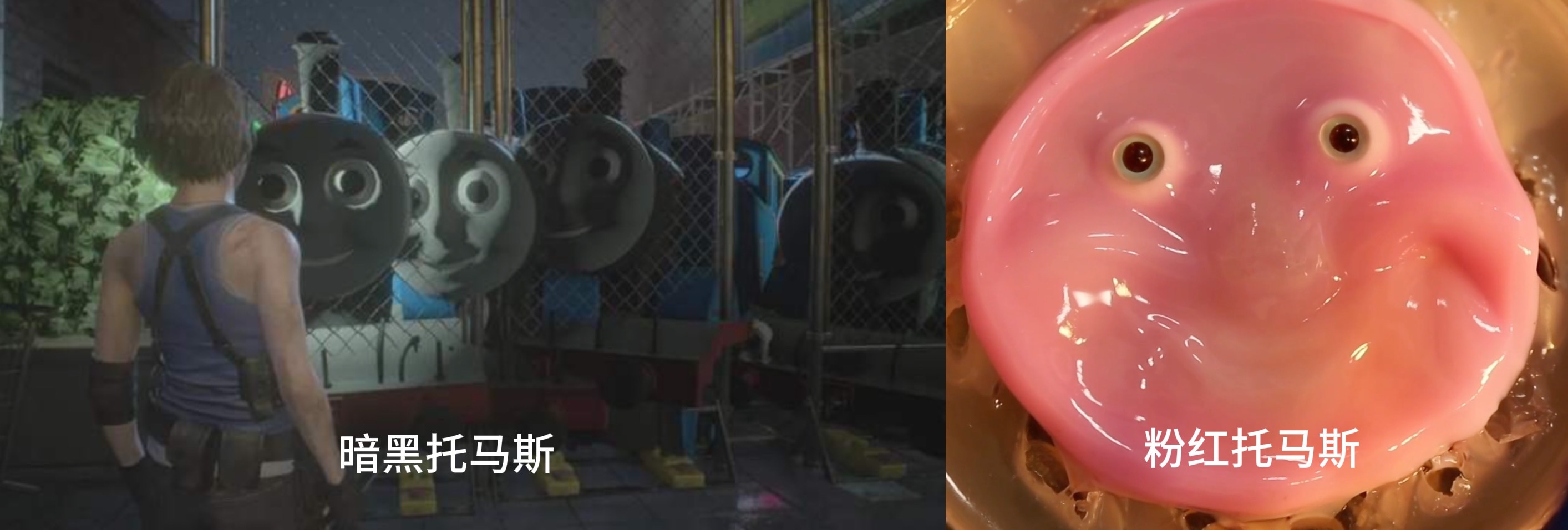 这里的托马斯小火车脸,看起来不太像低幼动画主角里那个善良可爱的小火车,而是更像玩家们恶搞进《生化危机》里的恐怖版托马斯MOD。