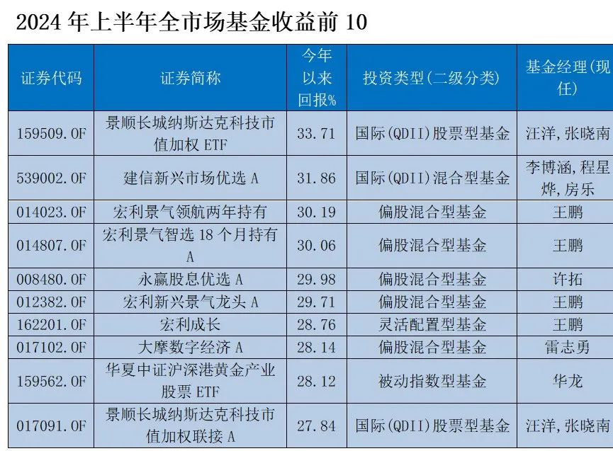 主动权益类基金方面,人工智能与高股息成为收益的主要来源。宏利基金基金经理王鹏旗下多只基金上榜,宏利景气领航两年持有今年以来收益超30%,永赢基金基金经理许拓的永赢股息优选A半年度收益28%。