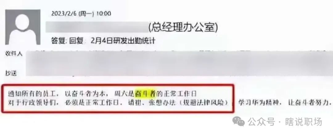 去年,这个汽车品牌曾凭借「 周六是奋斗者的工作日 」一封内部邮件,引发网络热议。当时汽车品牌给出的解释是,宣扬加班文化的本意,不是压榨员工,而是学习华为精神,让奋斗者努力,不让奋斗者吃亏!