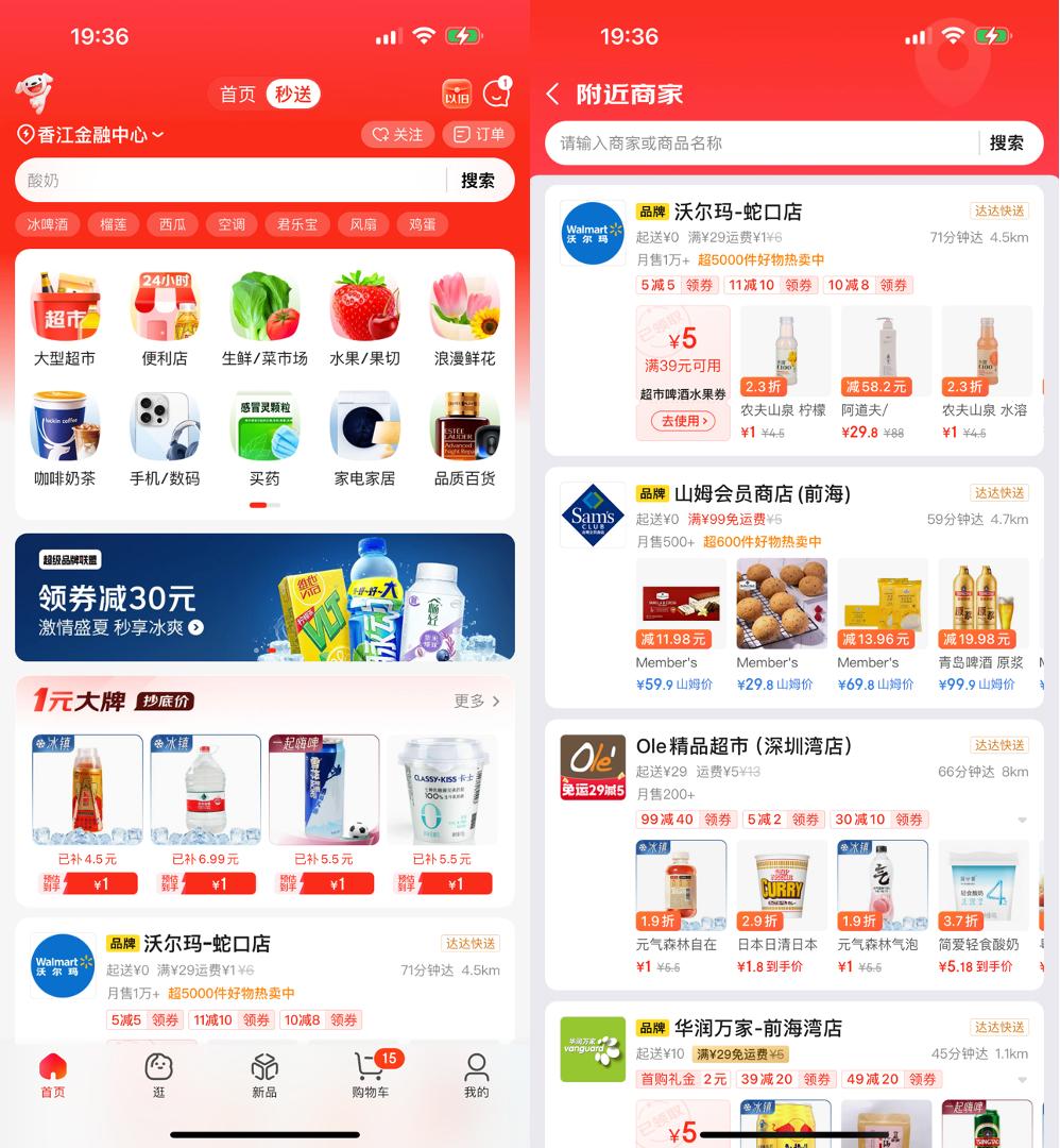 而到今年5月,京东即时零售业务(整合原即时零售品牌京东小时达、京东到家)全面升级推出京东秒送,提供最快9分钟送达服务。目前,京东App首页已上线秒送专区。