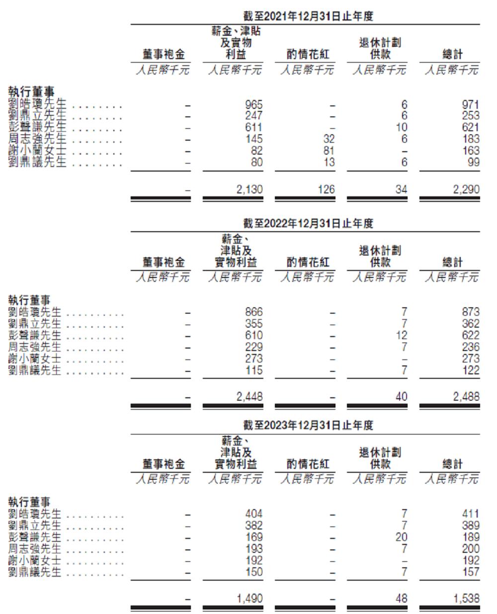 招股书显示,2021年-2023年,中赣通信的董事长兼总经理刘皓琼分别获得了约97万元、87万元和41万元的薪酬,他的儿子刘鼎立分别获得了约25万元、36万元和38万元的薪酬。负责公司市场开发和研发监督的彭声谦是中赣通信上海分公司办事处的负责人,同时也是公司董事。2021年-2023年,彭声谦分别获得了约62万元、62万元和18万元的薪酬。