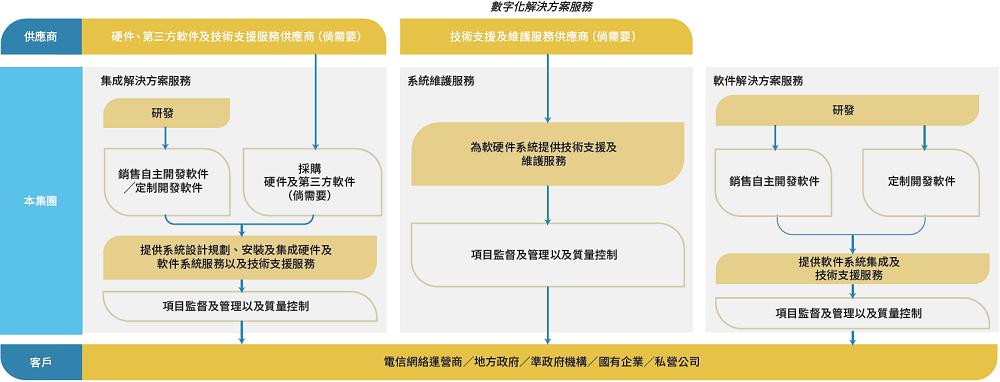 中赣通信的数字化解决方案服务业务主要包括集成解决方案服务、系统维护服务和软件解决方案服务。这一服务融合了物联网、云计算、大数据、判别式AI和区块链等数字技术,在统一平台下整合各种硬件和软件系统,以提高客户的运营效率和生产力。