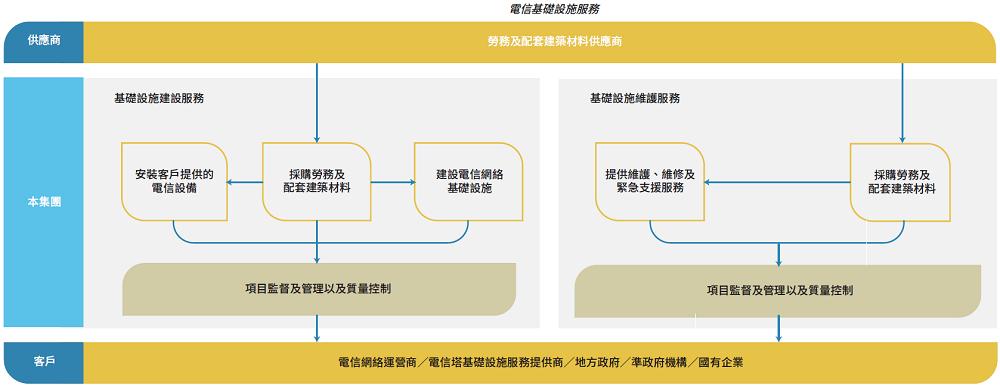 电信基础设施服务业务的具体体内容包括电信基础设施的建设和维护。招股书显示,电信基础设施建设服务主要涉及整个电信网络的网络基础设施建设、改造及安装,比如基站及配套工程服务、市电引入服务、传输网管线服务、宽带接入网服务及无线网设备安装服务。
