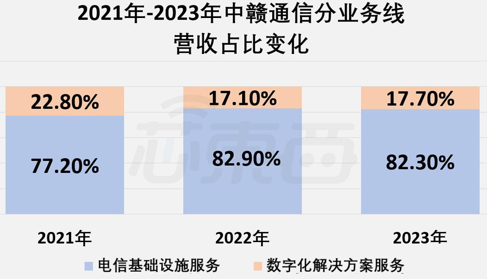 中赣通信的主营业务是为包括中国三大电信运营商在内的中国电信行业主要参与者提供电信基础设施服务及数字化解决方案服务。