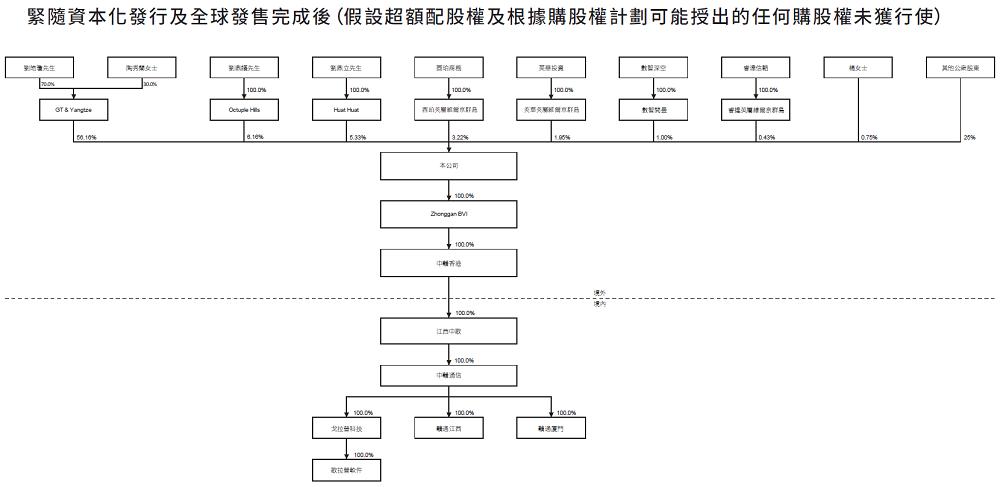 中赣通信集团控股是注册于开曼群岛的有限公司。中赣通信集团的股权结构图显示,集团通过多家子公司间接持有位于国内的中赣通信公司。中赣通信公司在国内还拥有戈拉普科技、歌拉普软件、赣通江西、赣通厦门等子公司。