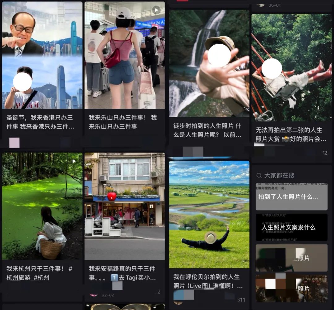 来到当下,人们在出行前更多会被抖音上的旅游博主种草,再到小红书上搜集指南以及各种“拍照攻略”。