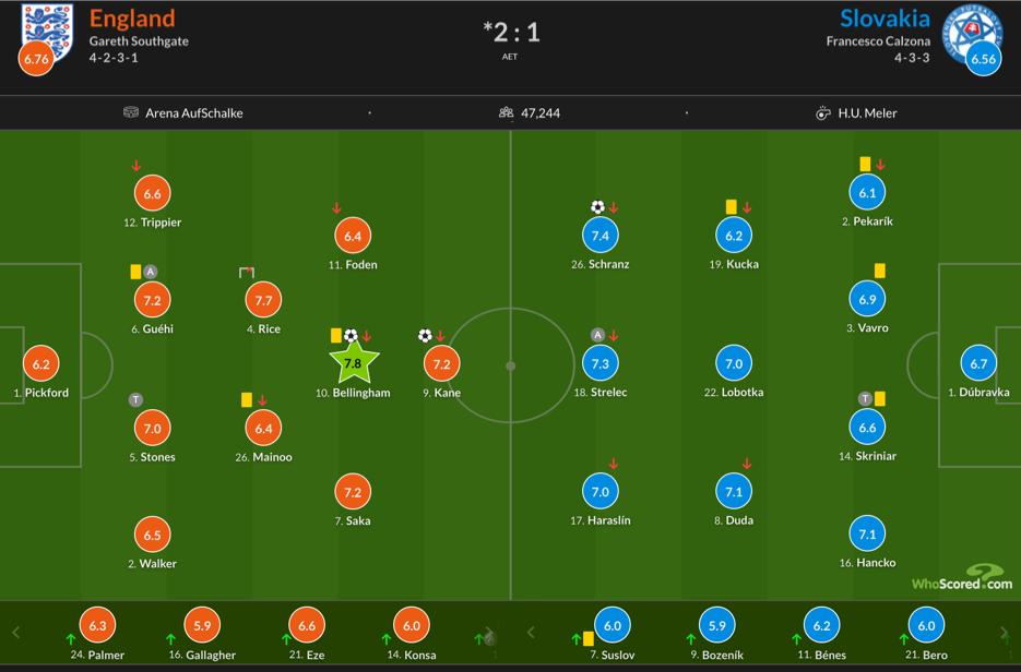 英格兰VS斯洛伐克 WS评分 |WhoScored