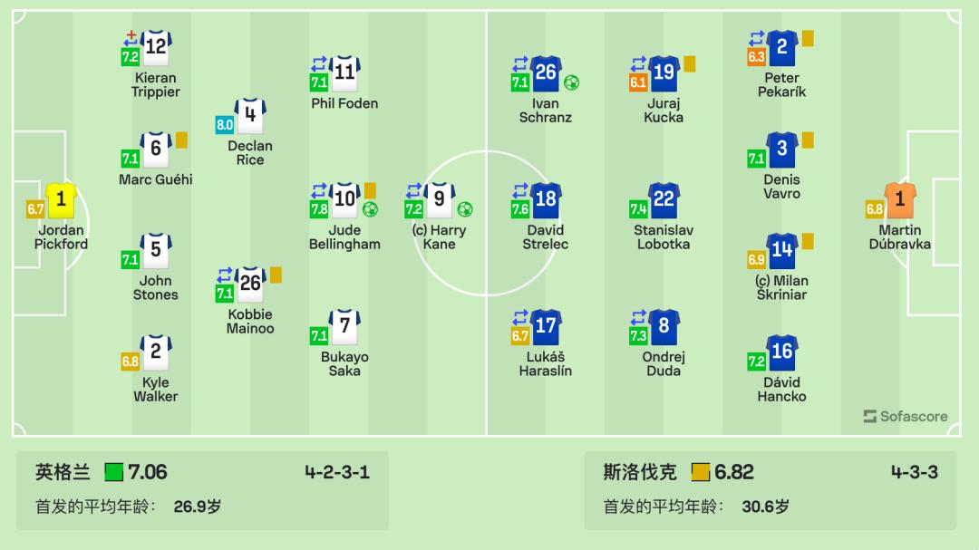 英格兰VS斯洛伐克 SS评分 +|SofaScore