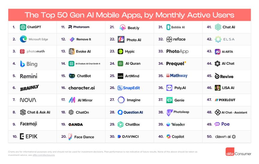 尽管硅谷是AI中心,但全球各地都涌现出非常受欢迎的产品,尤其是移动端。