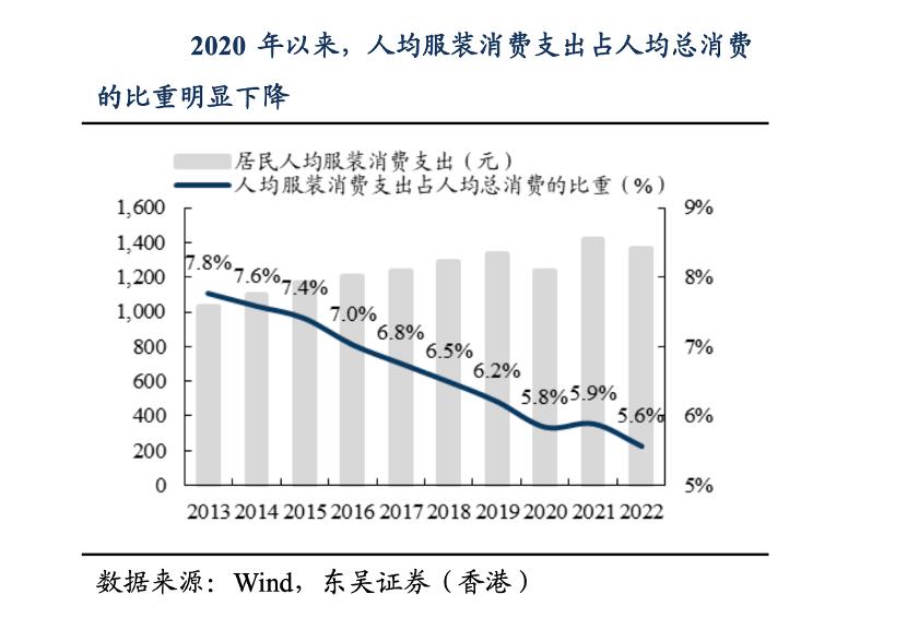 近几年我国人均服装消费支出占人均总消费的比重在明显下降,但支出总金额在企稳回升,表现在消费行为越加保守,对商品的选择也越有主见,对品牌力的营销手段影响的概率越来越小,“平替”越来越多出现在各大社交媒体中。