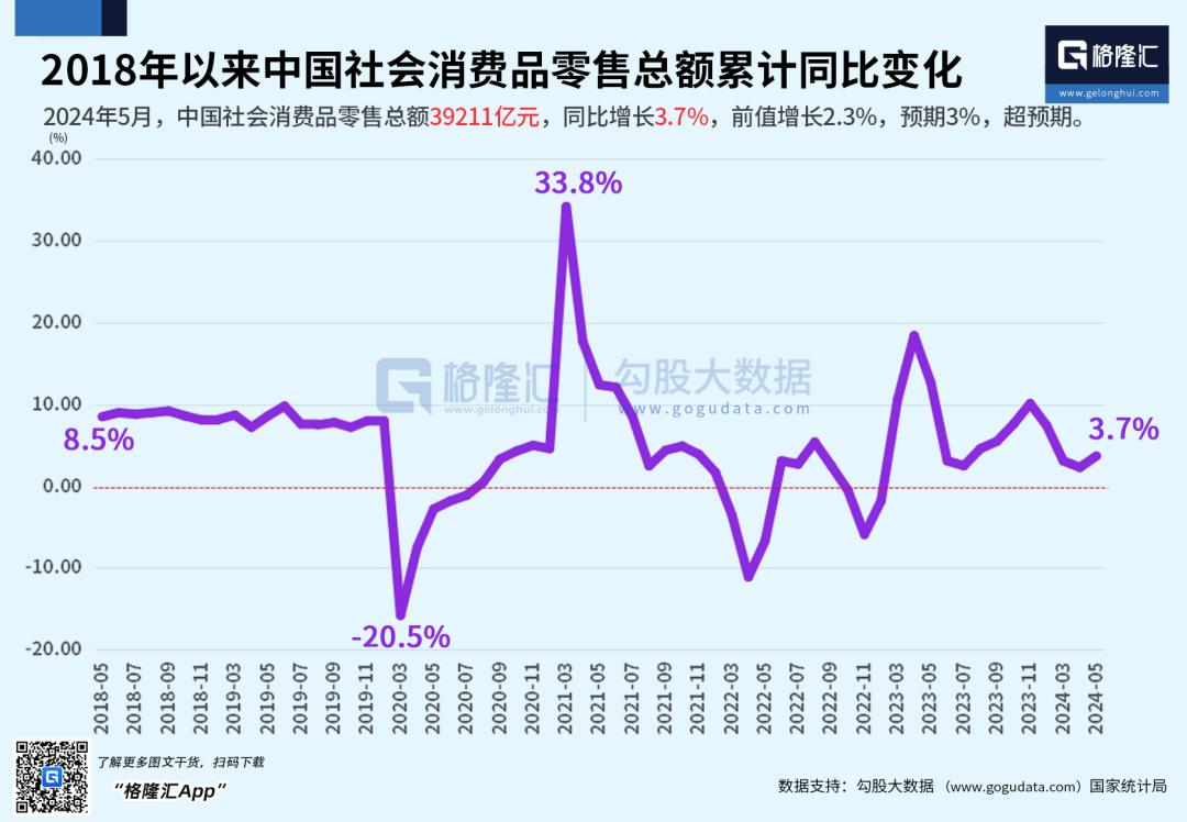 商务部最新数据显示,1—5月社会消费品零售总额19.52万亿元,同比增长4.1%,其中5月社会消费品零售总额3.92万亿元,同比增长3.7%,增速较上月加快1.4个百分点,但整体消费增速已经连续多月维持在低位水平,反映总体消费力的承压。