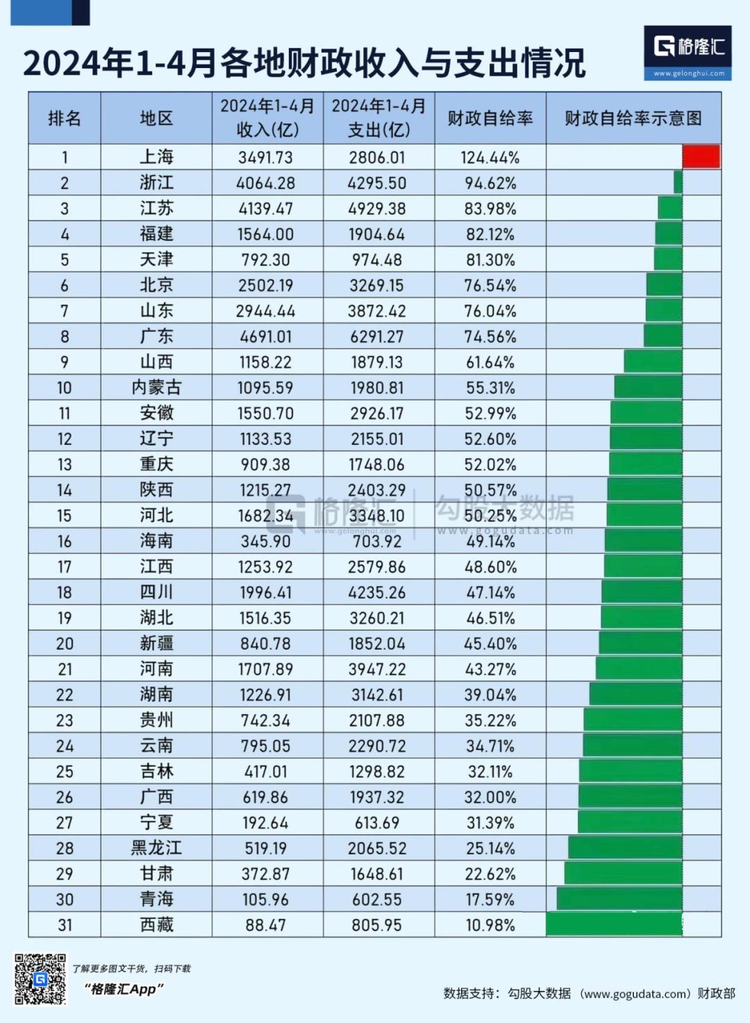 不管是整体税收,还是两个大头--增值税和企业所得税,以及卖地收入,这些主要的地方财政收入来源,都在下降。而同一时期,各省、直辖市中,除了上海还能够在财政上自给自足,其他的都是支出大于收入,包括经济最好的广东省。