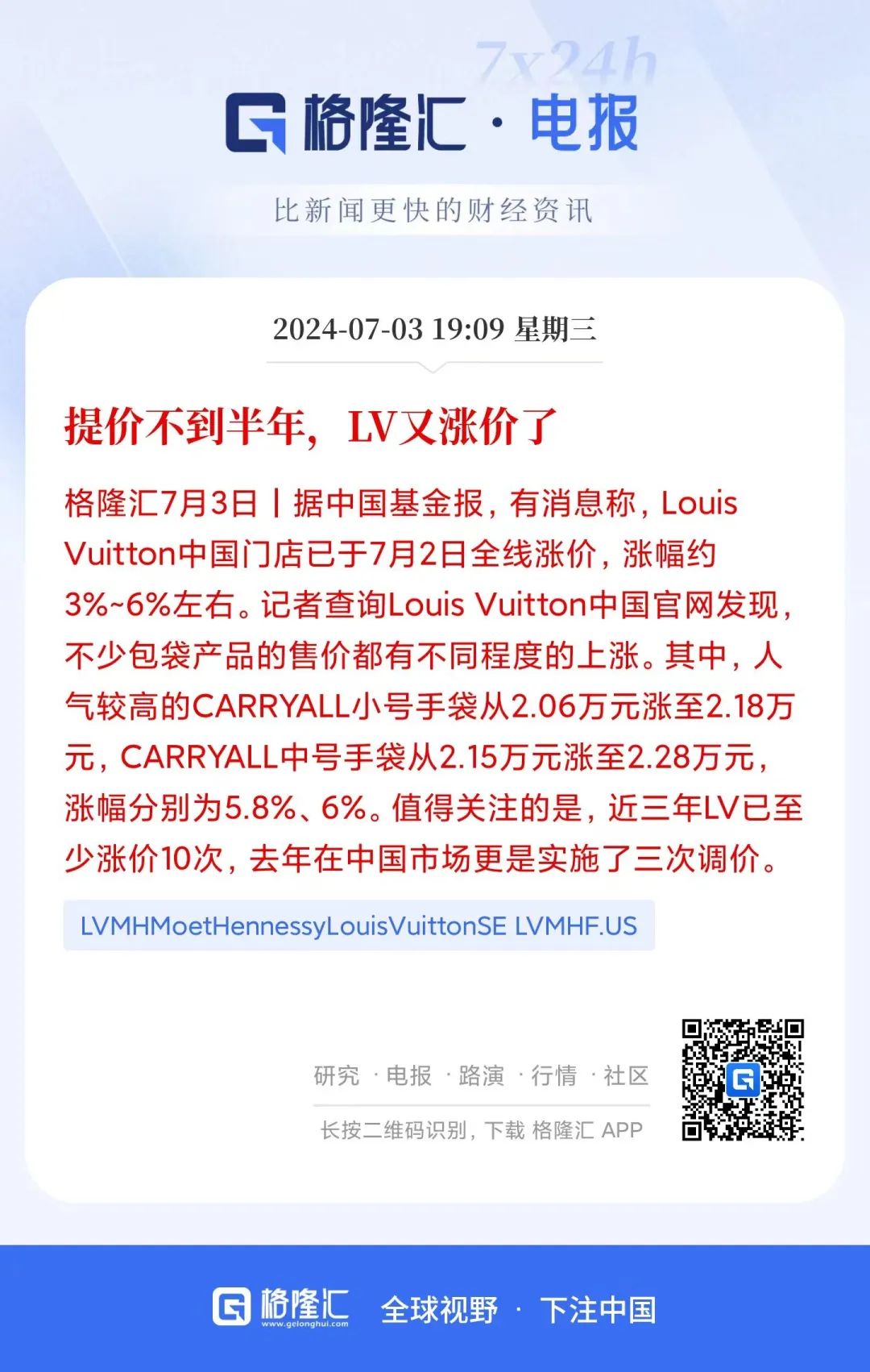 这不,消费税改革传闻一出,就有消息称LV中国门店已于7月2日全线涨价,涨幅约3%~6%左右,反应速度比谁都快。