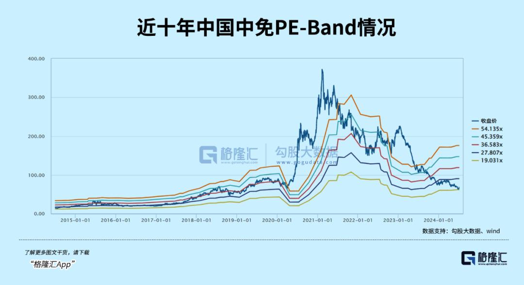 但到目前为止,在今天未涨停前中免的PE估值已跌破20倍,PB估值约2.5倍,几乎是其上市来估值历史上最低的水平。