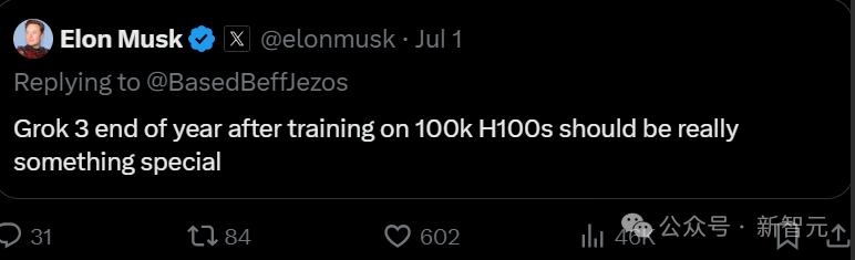 马斯克连回两条推文为xAI造势,宣布8月发布Grok 2,年底将推出在10万张H100上训练的Grok 3,芯片加持创新数据训练,打造对标GPT的新一代大语言模型。