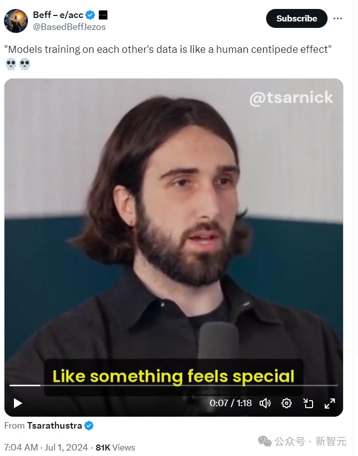 原帖中,Cohere首席执行官Aidan Gomez表示,由于许多人工智能模型都是根据OpenAI的输出结果进行训练的,因此会产生「人体蜈蚣效应」,即模型会产生相同的输出结果。