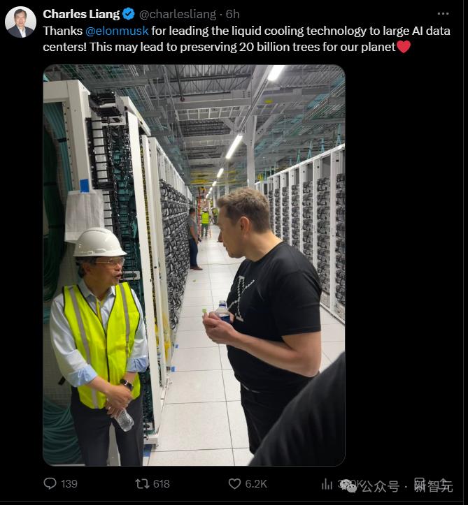 这不,supermicro CEO和创始人Chales Liang发推公布和马斯克在数据中心的合照。