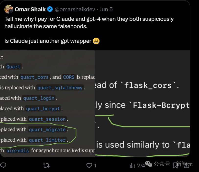 有一位推特网友发现,他虽然付了GPT-4和Claude两份的钱,却得到了同一份相同的错误答案。