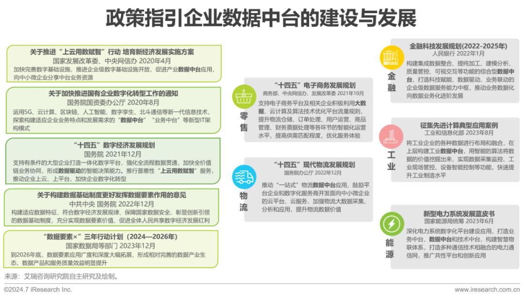 国务院及行业机构已发布多方位指引政策,促进企业数据中台的构建