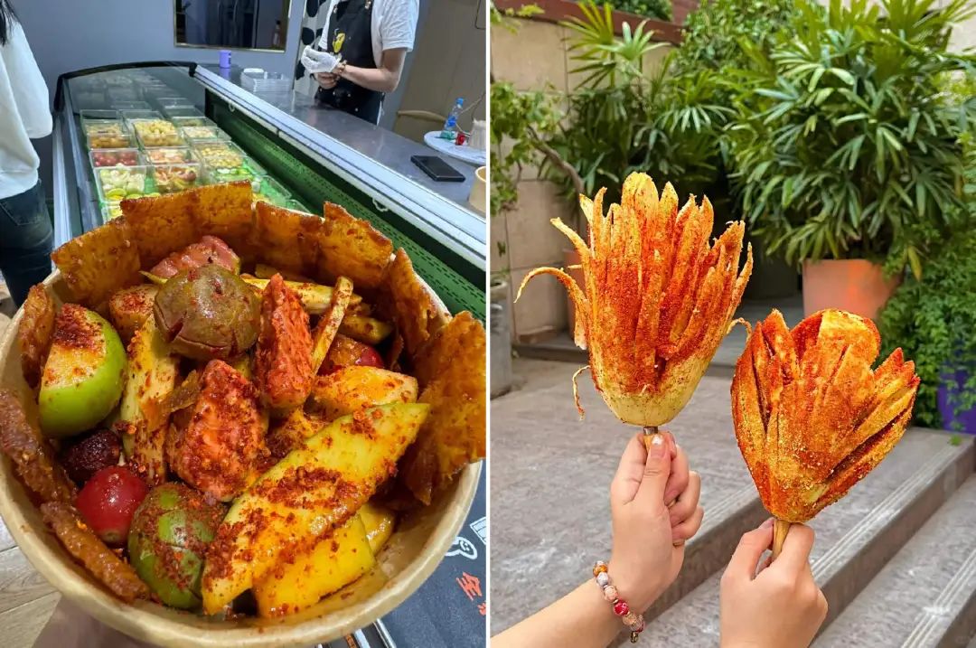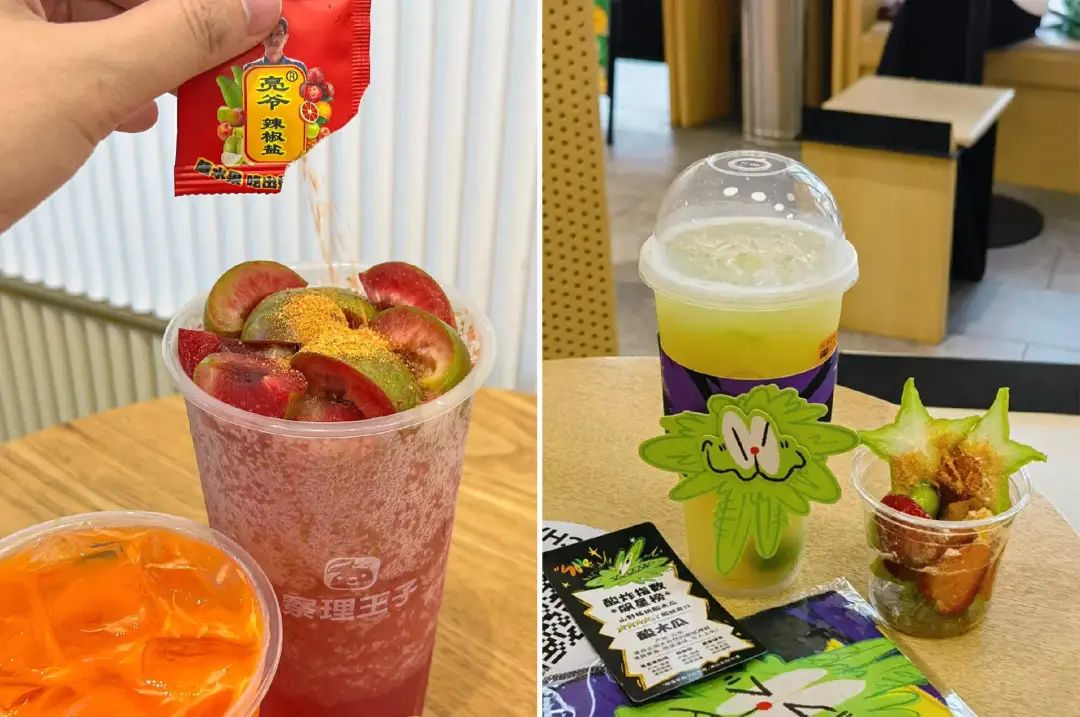而椒盐粉、甘梅粉等调味料带来的复合口味,与水果的脆甜相得益彰,轻易就能俘获每一个前来尝试的“好奇人类”,甚至有网友戏称“世界上只有两种人——喜欢酸嘢的人和即将尝试酸嘢的人”。