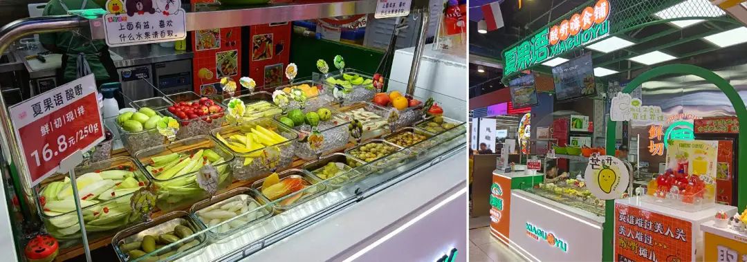 其次,酸嘢要好吃,拼到最后还是水果品质,能否拥有完备的供应链,在很大程度上决定了品牌能否活下去。吃惯了酸嘢的人,一口就能尝出水果是否新鲜,这也让大多数店铺选用现切的水果作为主打产品。
