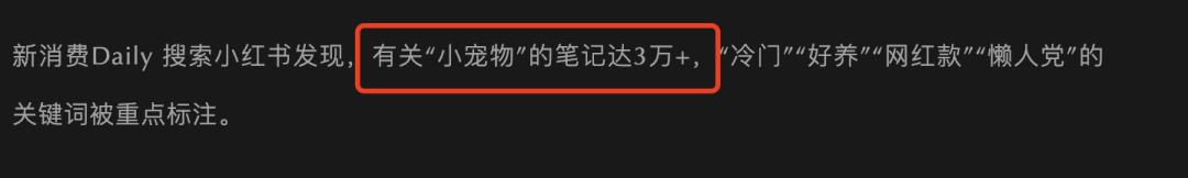 截止发稿前,在小红书,关于“小宠物”的笔记数量已经高达1455万+篇。值得一提的是,2022年8月,iBrandi品创也曾在小红书搜索过“小宠物”这一内容,彼时的笔记数量仅为3万+篇。不到两年时间,笔记量翻了近485倍。