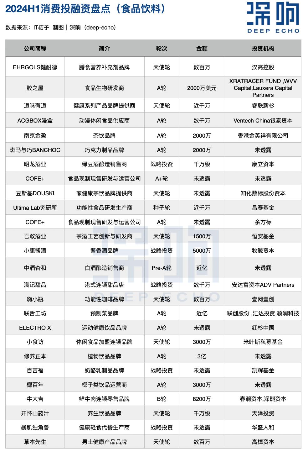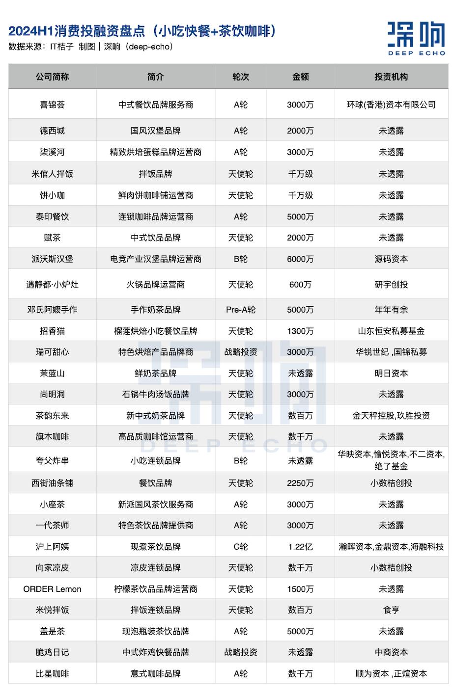 相比前几年,2024年上半年的消费投融资少见标志性的超级项目或现象级赛道,但从资金的流动、现实的呼应和业界预判逻辑的落地来看,消费投融资市场不乏新的生机。而新生机的不断演化,也将孕育出新的明星项目。