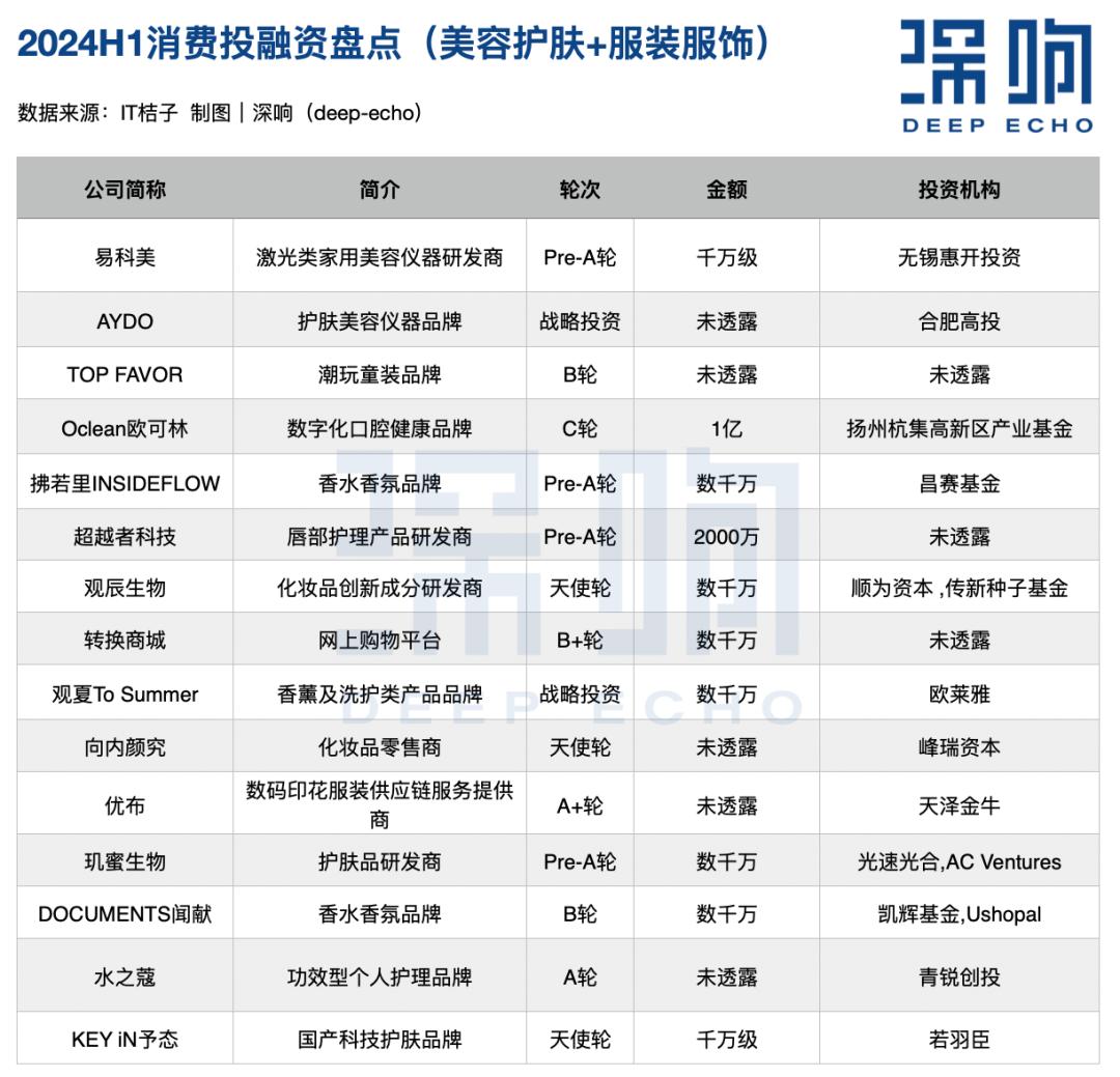 和“美”相关的项目也是资金的关注对象。今年上半年,美容仪、香氛、功能性护肤等赛道均有重要融资事件——香水香氛品牌“观夏”获得来自欧莱雅的数千万元战略投资;激光美容仪品牌“易科美”母公司“合铼科技”获得无锡惠开投资千万级融资等。