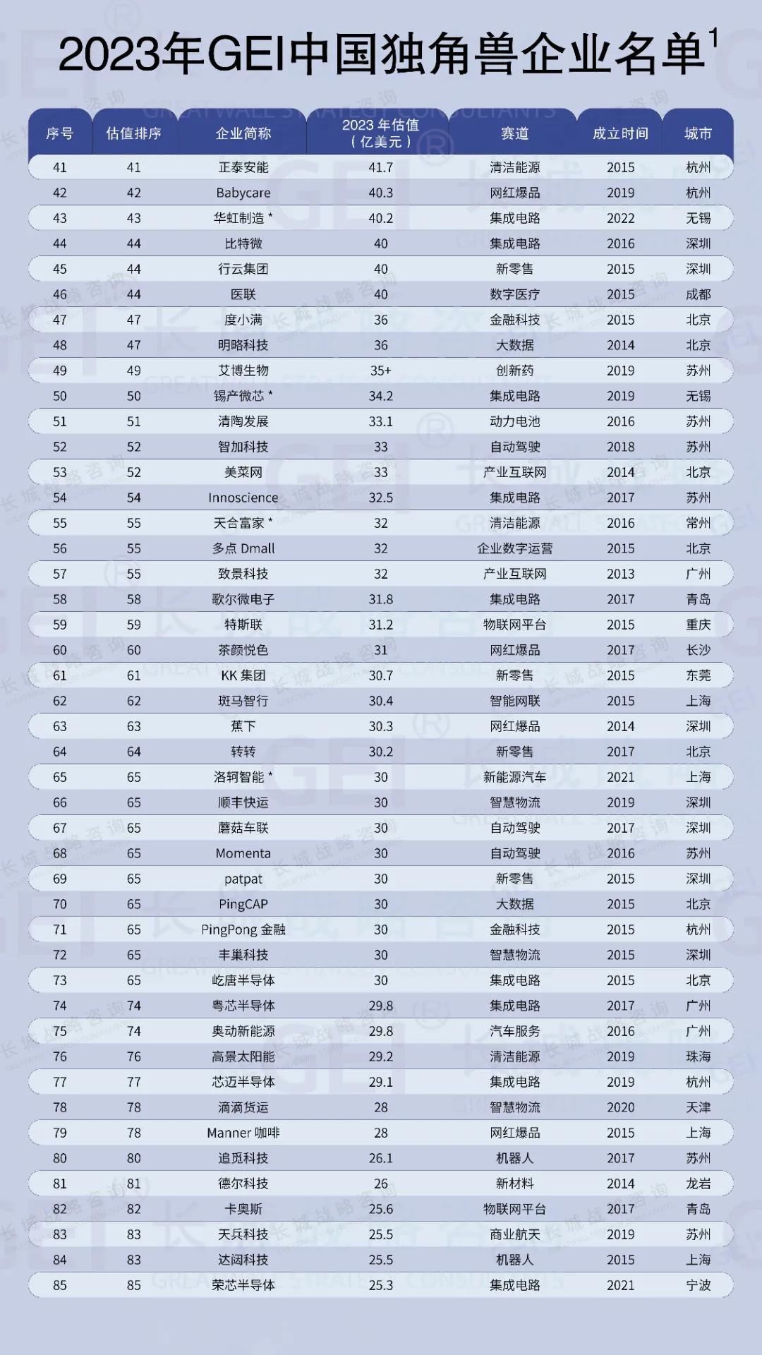 最近有两个独角兽的榜单引发媒体热议,一个是在“2024中国(重庆)独角兽企业大会”上,长城战略咨询发布了《中国独角兽企业研究报告2024》。