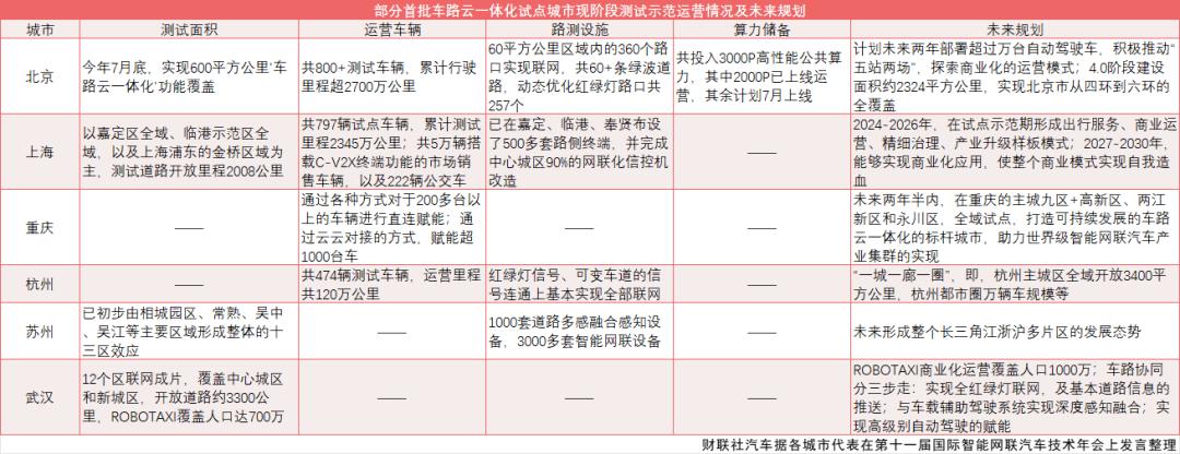 “全国有50多个省市出台了相关智能网联测试规定,也有很多地区做测试示范和试点。”有了解此次试点城市申报及评审的业内人士表示。另据智能汽车与智慧城市协同发展联盟,此次“车路云一体化”应用试点申报城市超30个,最终确定为20个;入选城市不仅满足《通知》的六项申报条件,还结合自身特点开展了特色场景应用。