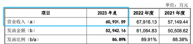 不过,公司最近一年业绩情况不太乐观。公司6月份更新的一轮问询回复函中,对2023年一些主要财务数据进行了披露,去年营业收入为6.09亿元,同比下滑10%;净利润为4304万元,相较于2022年下滑了15%。