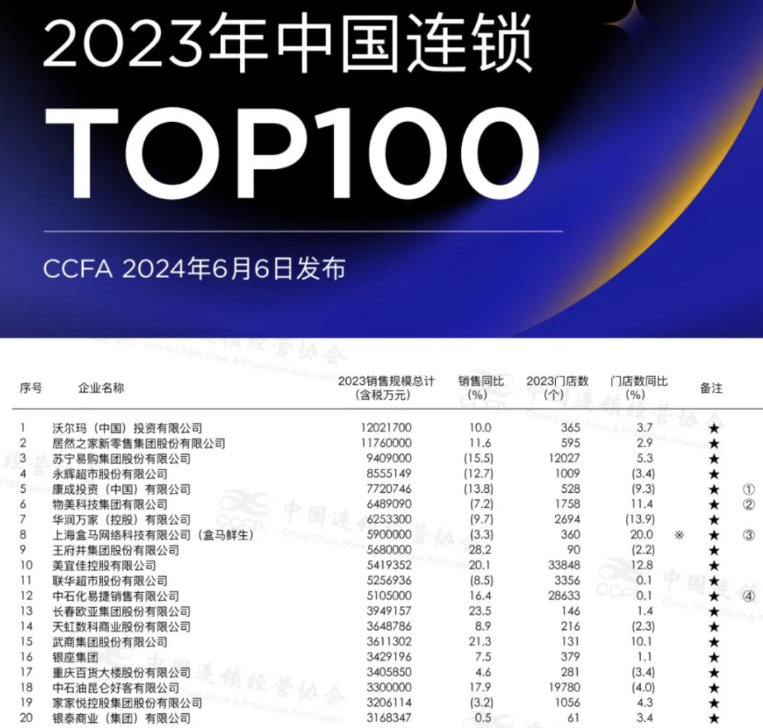 图:CCFA“2023中国连锁Top100”榜单