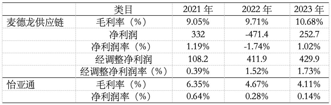 与国内A股上市公司头部供应链管理公司“怡亚通”的利润水平相比,不论是在绝对数字上,还是在变化趋势上,麦德龙供应链算是交出一份较好的成绩单。