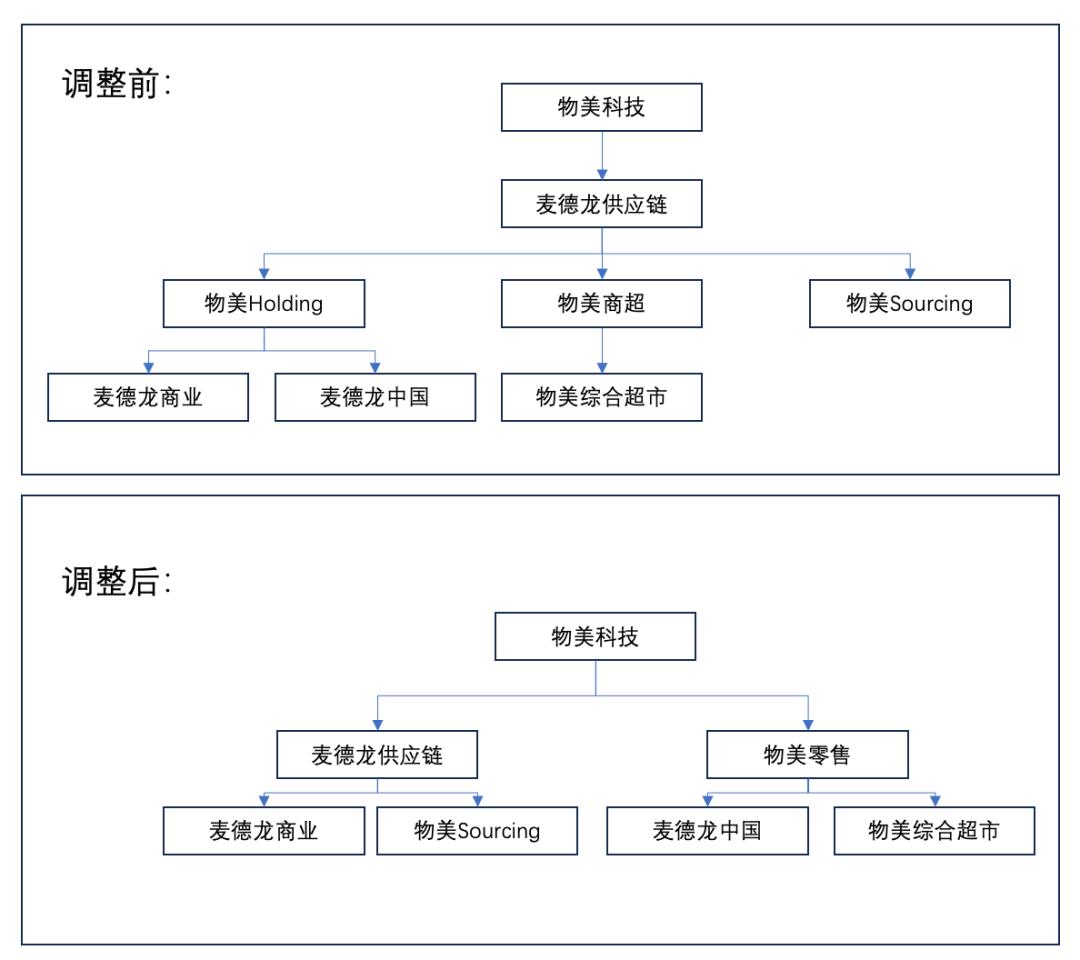 将“麦德龙供应链”旗下原本实体零售商超部分进行剥离,其中“麦德龙中国”内部作价5.46亿元,“物美综合超市”内部作价14.3亿元,小计19.76亿元出售给“物美零售”;自身只保留“麦德龙商业”和“物美Sourcing”两大核心版块。