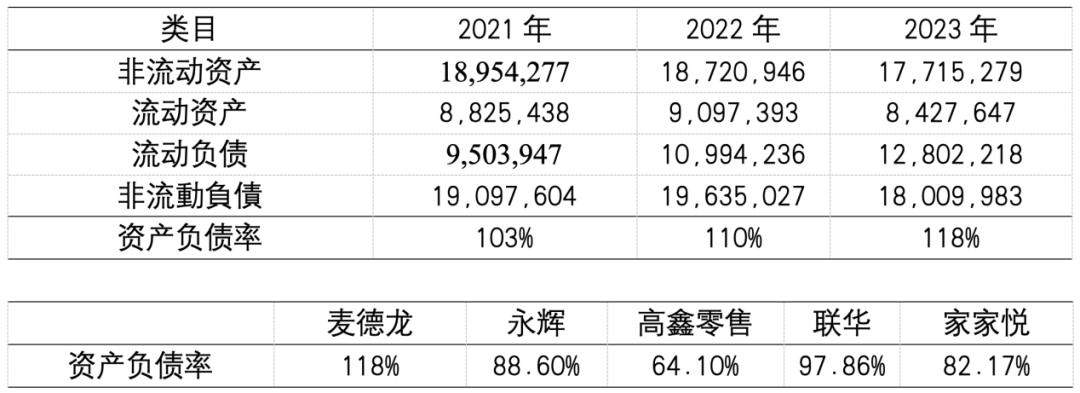 此外,招股书中透露出,麦德龙供应链近三年的资产负债率始终高于100%,并逐年升高,在2023年达到118%,完全处于“资不抵债”的状况。