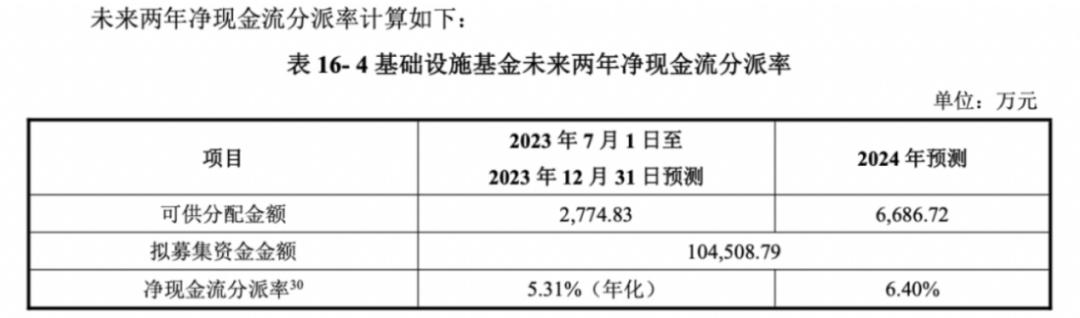 表:基础设施基金未来两年净现金流分派率