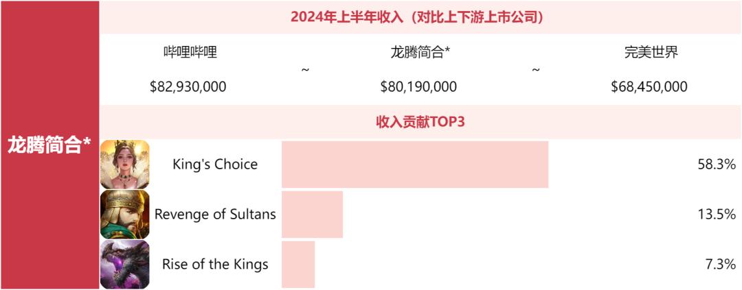 2021年龙腾简合上线了《King's Choice》并主攻欧美市场。从2022年开始《King's Choice》的收入原本有所下滑,但是在今年年初再次出现了增长,从美国iOS畅销榜接近200名回升到目前100多名的位置,上半年为公司贡献了接近60%的收入。