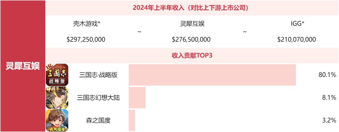 灵犀互娱是阿里巴巴旗下的游戏品牌。当初阿里尝试游戏业务数年,直到《三国志·战略版》火爆之后才算是在自研板块站稳了脚跟。如今《三国志·战略版》依然是灵犀互娱的主要收入来源,上半年贡献了80%的收入。