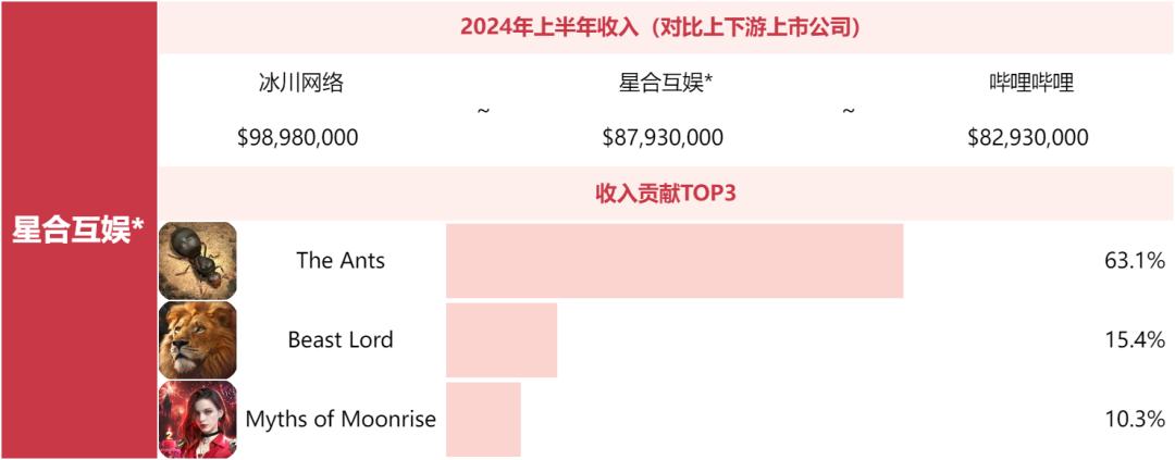《小小蚁国(The Ants)》是星合互娱第一款成功的SLG,也曾带起了一波蚂蚁题材SLG的小潮流。目前《小小蚁国》是星合互娱的营收主力上半年贡献了超过60%的收入。其国内版本交给三七互娱发行,收入数据未统计在内。不过这款游戏的海内外收入均在逐渐下滑中。