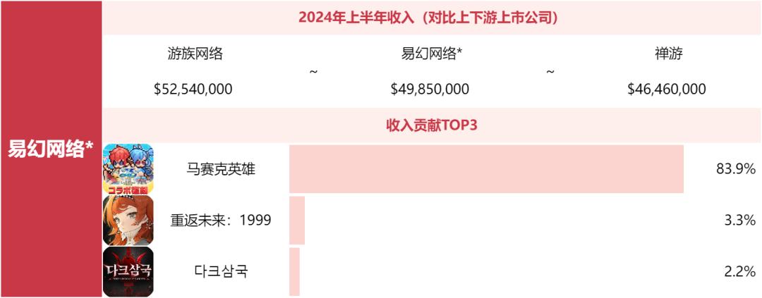 最具代表性产品的是去年在日本市场发行的《马赛克英雄》,单月流水突破2000万美元,但今年6月累计流水超过1亿美元。单是这款游戏就为易幻网络提供了超过80%的流水收入。
