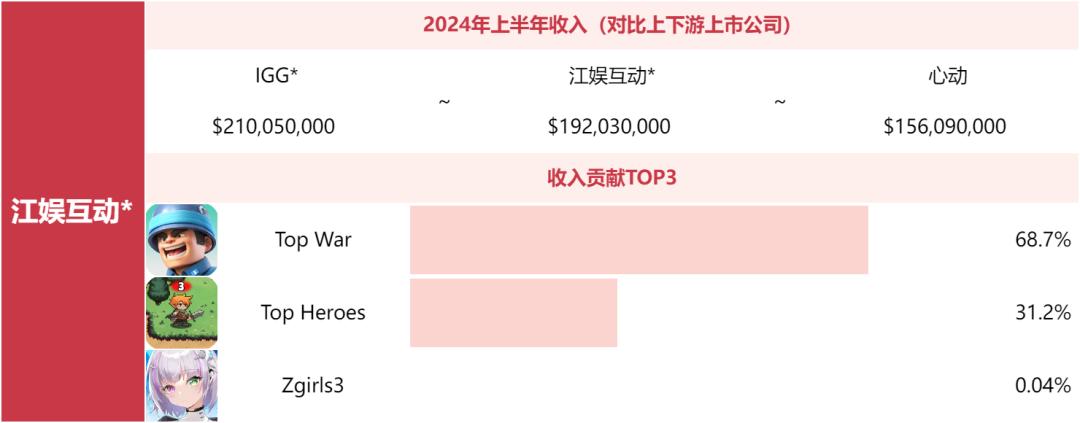 江娱互动以休闲化SLG出名。《口袋奇兵(Top War)》维持稳定运营,上半年贡献了68.7%的收入。新品《Top Heroes》在今年2月上线,逐渐攀升到美国iOS畅销榜60多名之后开始回落,上半年贡献了超过30%的收入。
