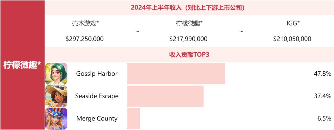 Merge-2游戏《Grossip Harbor》从2022年上线之后收入逐渐攀升,去年经过稳定运营之后再有所突破,现在稳定排在美国iOS畅销榜TOP50,上半年贡献了将近50%的收入。今年另一款《Seaside Escape》也开始发力,不仅同样进入到美国iOS畅销榜TOP100,还在韩国iOS畅销榜也排到TOP30的位置。