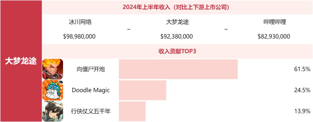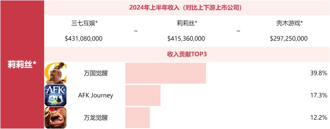 代理产品SLG《万国觉醒》和《万龙觉醒》是其重要的收入组成部分。《万国觉醒》依然是营收主力,上半年贡献了将近40%的收入。新作《万龙觉醒》则在今年上线了日服版本,新的增量抵消了其他地区版本的收入下滑。