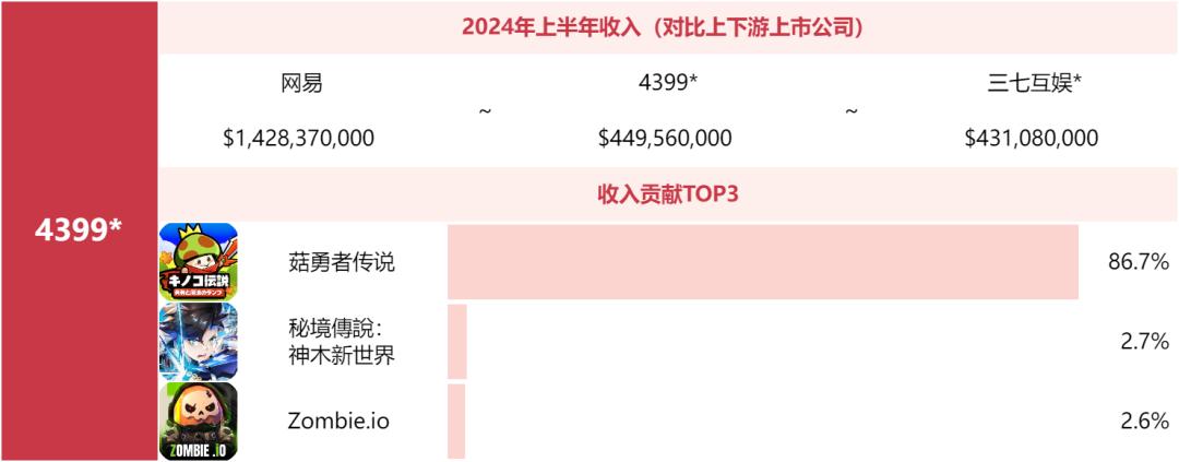 现在4399靠小游戏把握住新机遇。《菇勇者传说》在上半年贡献了超过80%的收入,其微信小游戏版本《冒险大作战》仍位于畅销榜TOP100。另一款小游戏新品《Zombie.io》采用了幸存者like玩法,今年4月在海外上线,也不时能排到美国iOS畅销榜TOP100多名。