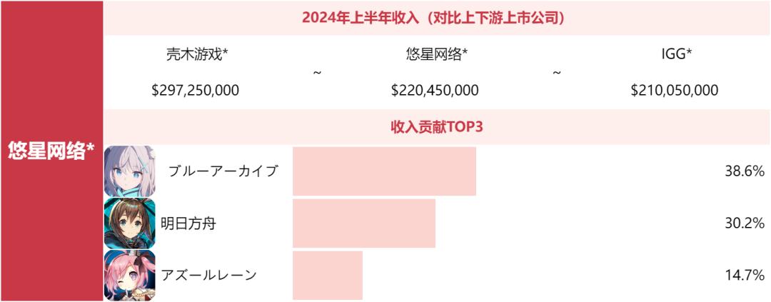 悠星网络比较低调,主要做二次元游戏的全球代理发行业务,另外也有制作动画的内容团队。去年悠星网络推进了国内业务,发行了《蔚蓝档案》的国服。